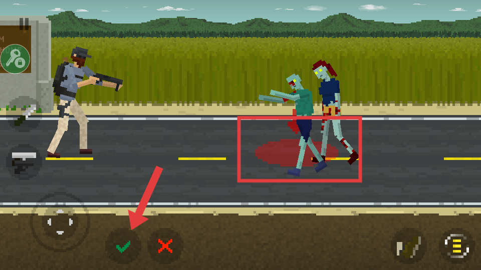 3、使用手雷在僵尸下发瞄准好投掷位置后,点击【打钩】将手雷投掷出去。