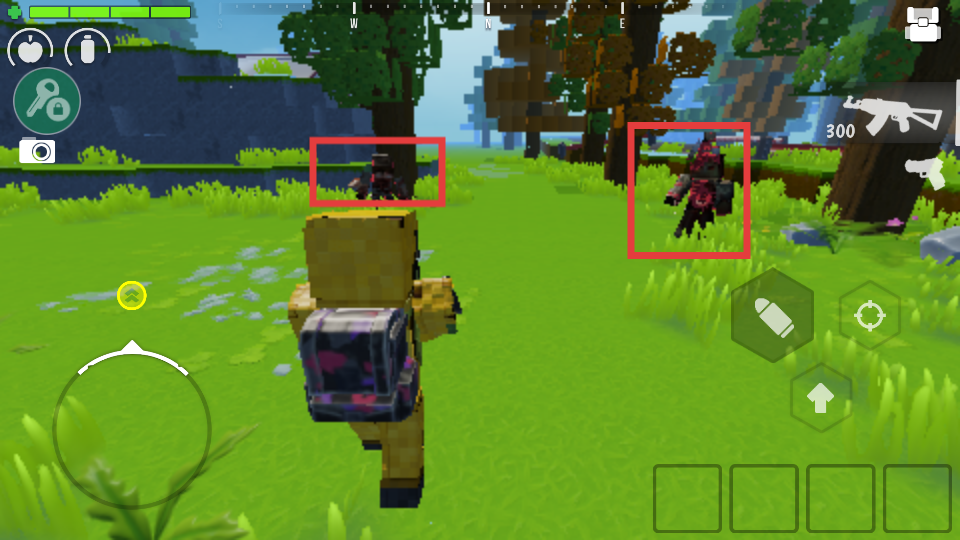 2、进入游戏场景后,遇到红框内的僵尸,准备好进行作战。