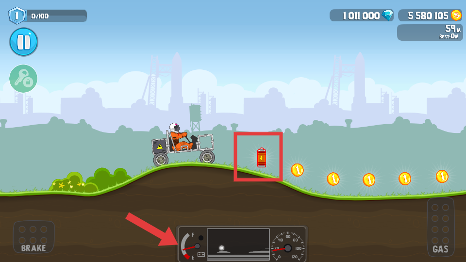 3、注意收集赛道上的能量罐,借助mod菜单可让赛车能量更持久,同时收集金币提升收益。