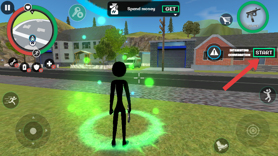 2、到达任务点后点击【START】按钮开启任务,内置mod菜单可强化角色能力,轻松完成任务。