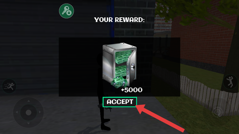 4、完成任务后点击【ACCEPT】按钮领取+5000金币奖励,内置mod菜单可让奖励翻倍,积累资源解锁更多内容。