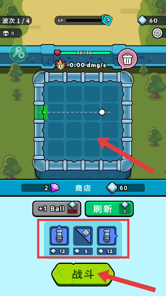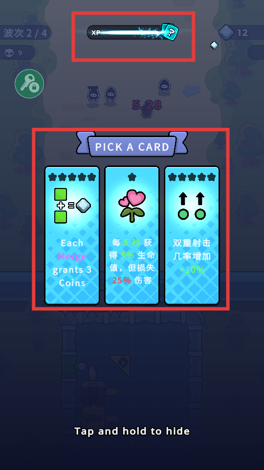 4、升级时选择增益卡牌强化弹球能力,免广告模式让你可快速积累经验和资源,不断提升防御实力,顺利通过所有波次。