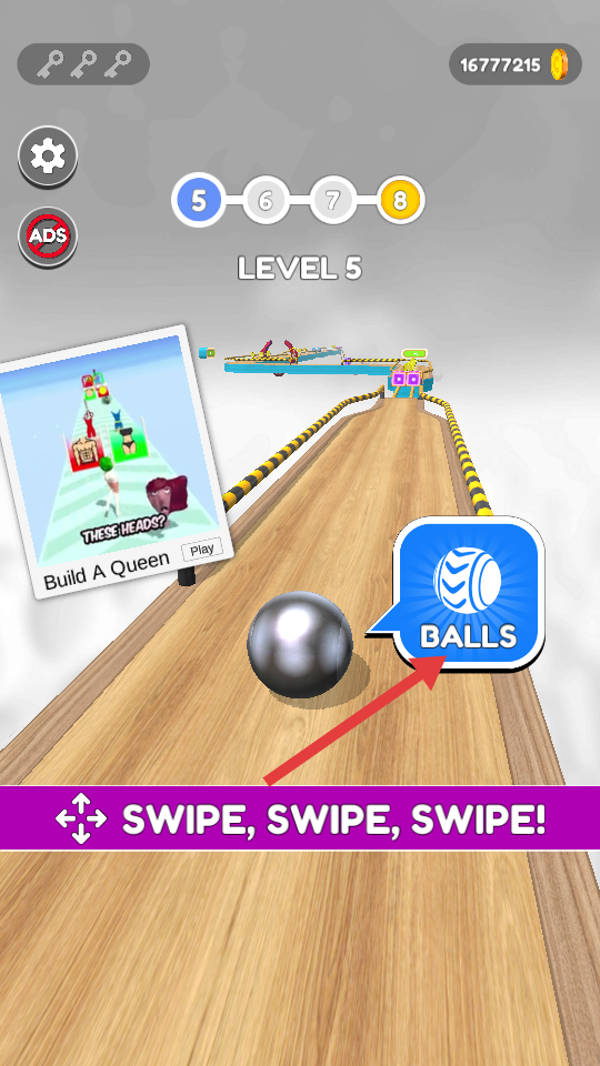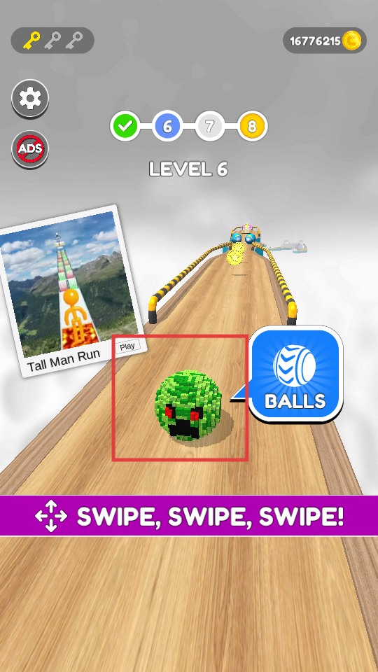 4、回到主界面,可以发现球体更换完成,可操控球体在赛道上移动。