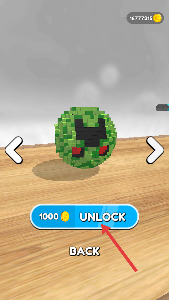 2、选择喜欢的球体,点击【UNLOCK】按钮,消耗金币解锁新的球体。