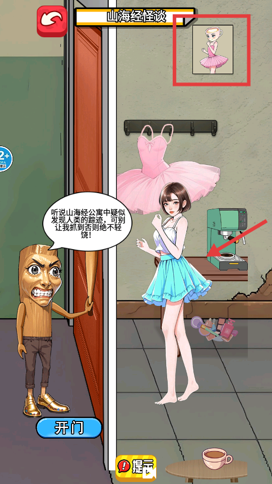 2、在场景中根据墙上粉色芭蕾舞裙的画面提示,将角色伪装成对应人物。
