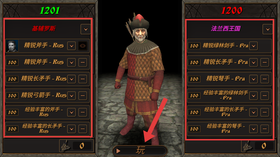 2、在势力选择界面,搭配【基辅罗斯】【法兰西王国】等势力的兵种,点击【玩】开始战斗。