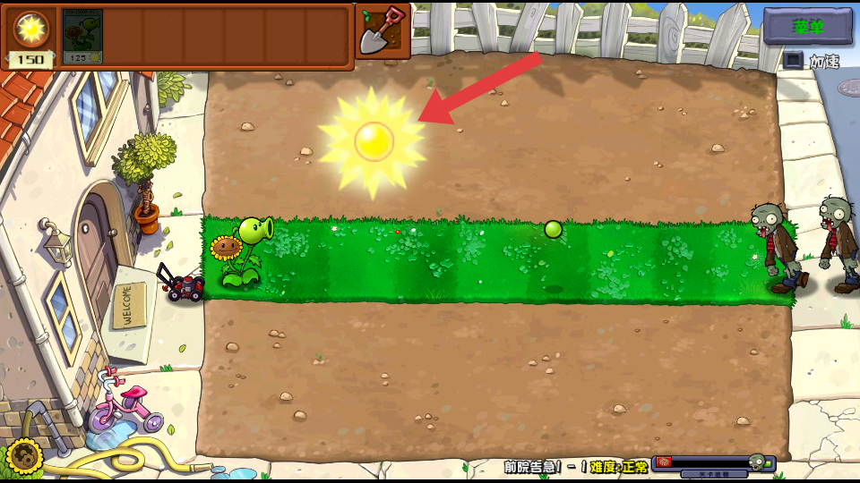 3、出现阳光时,点击【阳光】即可进行收集,种植更多植物。