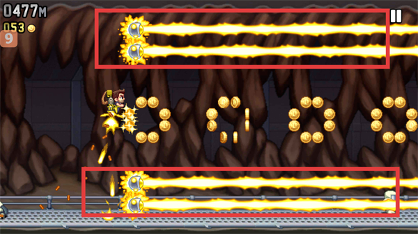 2、收集金币的过程中,注意躲避随时出现的激光。