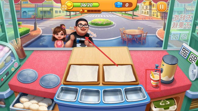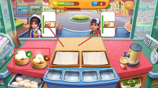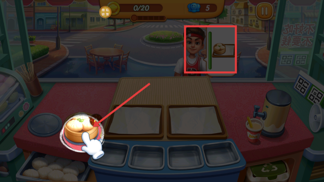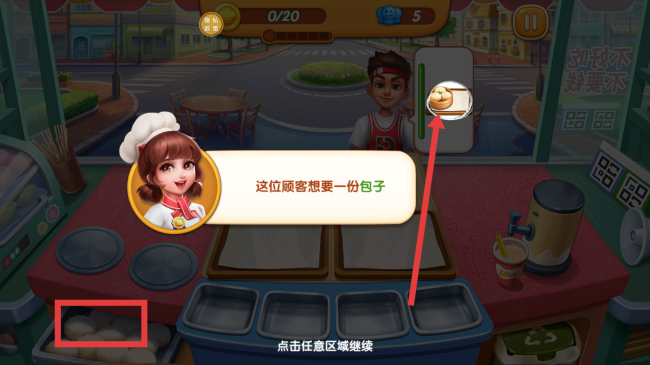 1、顾客想要一份包子时,查看左侧包子区域,准备为顾客提供包子,满足顾客需求。