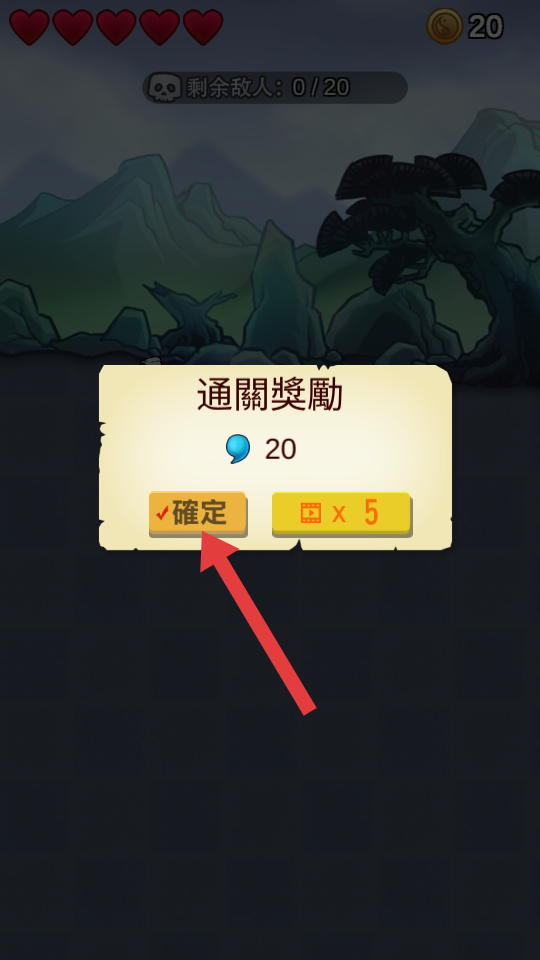 4、关卡通关后,点击【確定】按钮领取通關獎勵,利用内置菜单可优化奖励获取,提升角色实力。