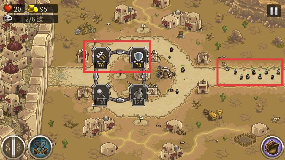 3、当敌人攻势猛烈时,点击左下角援军按钮,呼叫援军阻截并攻击敌人,辅助防御。