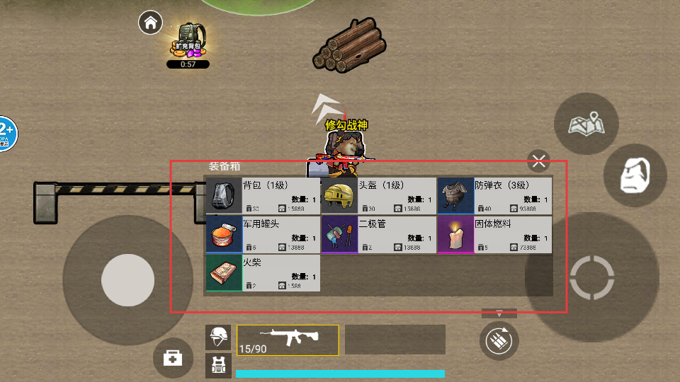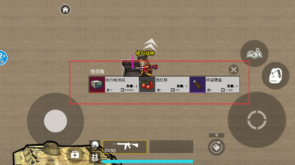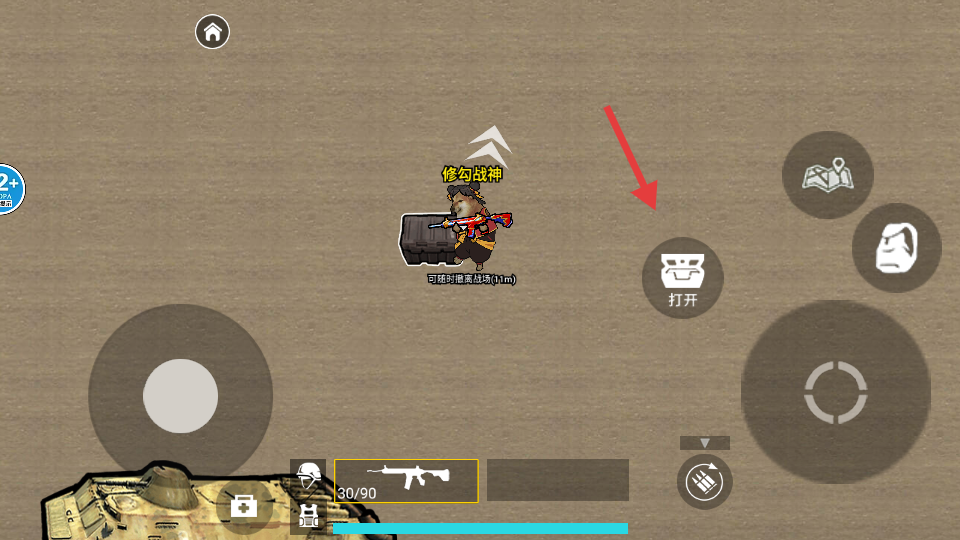1、操控“修勾战神”角色,靠近物资箱点击【打开】,获取道具。