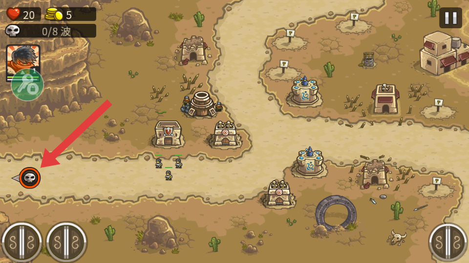 2、观察关卡路径,选择关键点位,利用全英雄解锁的各类防御塔,如弓箭塔、防御塔等,布局防御。