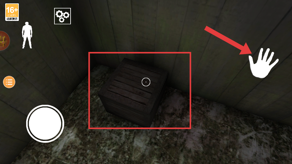 4、在房间角落发现木箱,点击右侧白色手掌图标,查看木箱内是否有逃生所需的道具或线索。
