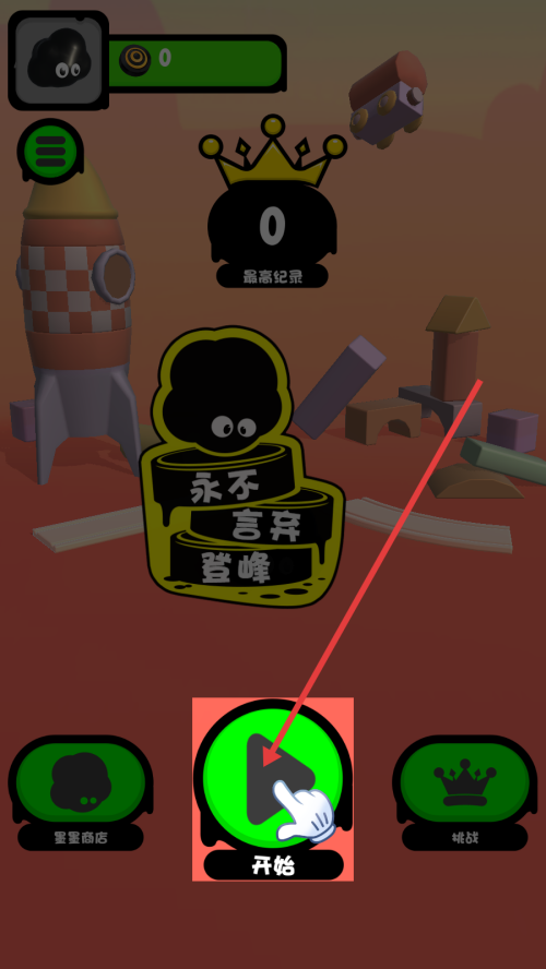 1、点击绿色【开始】按钮,开启游戏,准备操控黑色角色进行挑战,开启游戏的第一步。