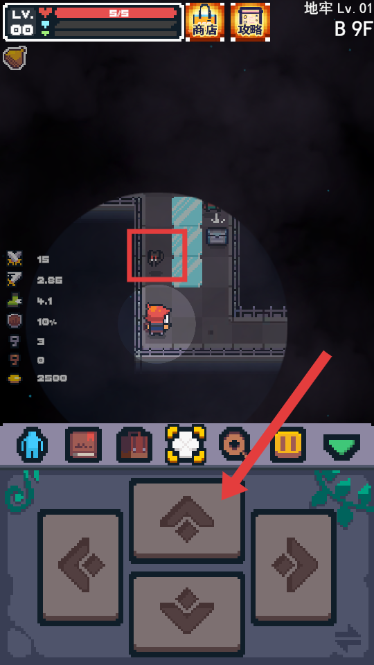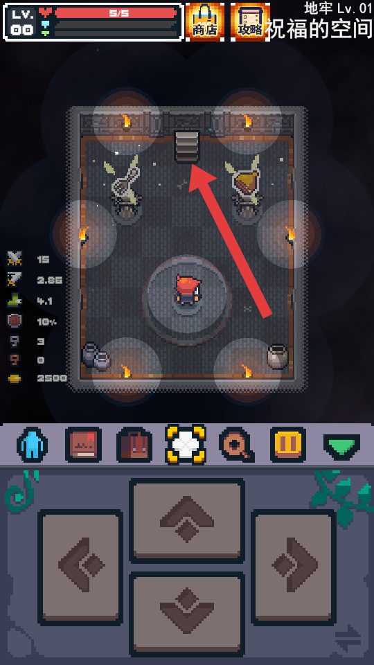 3、在【祝福的空间】场景中,按箭头指示方向移动,进入【地牢第九层】进行探险。