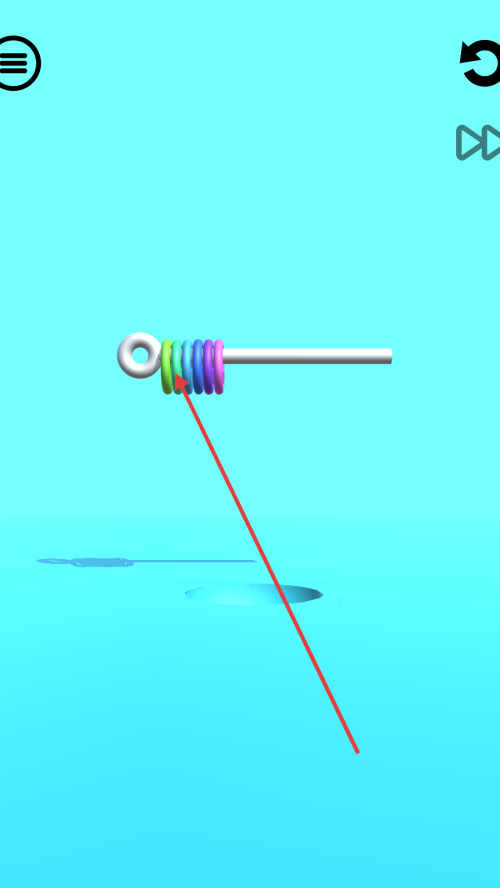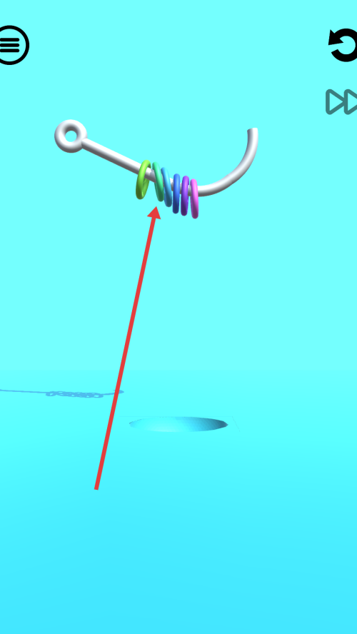 1、观察彩色圆环套在杆上的初始状态,准备通过操作让圆环移动,开始游戏的第一步挑战。