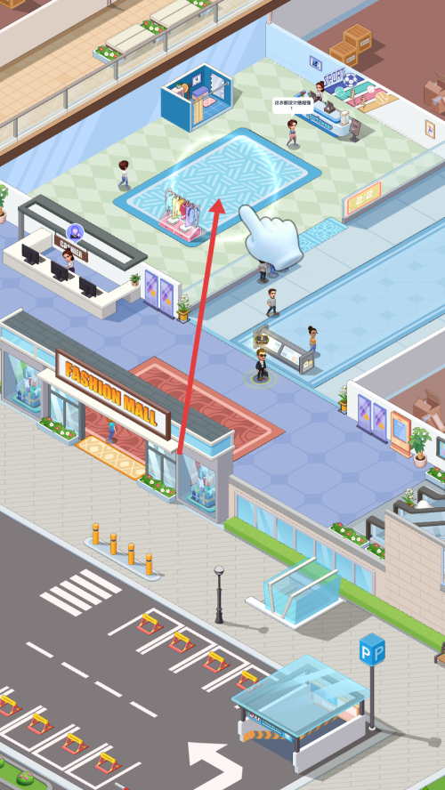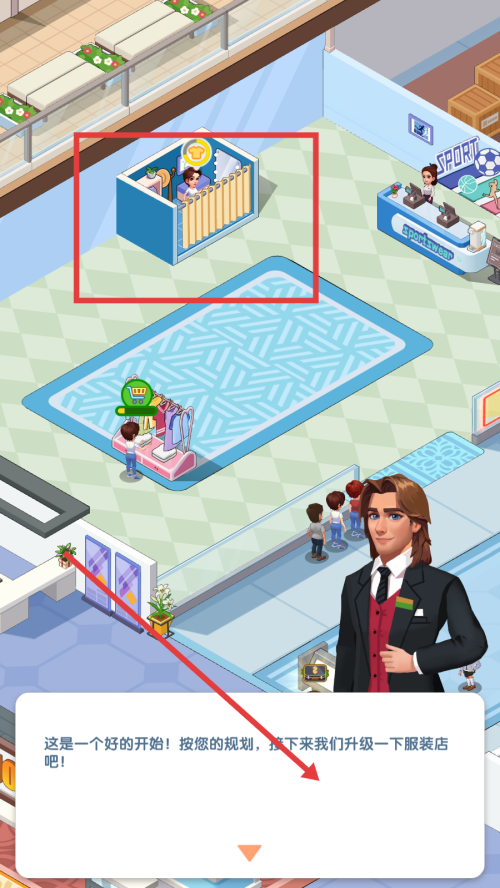 2、在商场场景中,点击指定区域,可进行相关操作,推进服装店升级等经营进程。