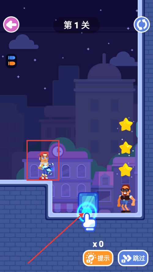 2、操控角色,长按屏幕拖动瞄准下方蓝色区域,尝试触发机关或移动道具。
