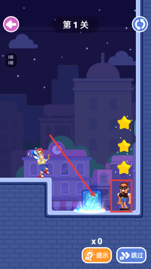 3、瞄准后释放,观察道具或机关的变化,同时留意右侧敌人,规划后续行动。