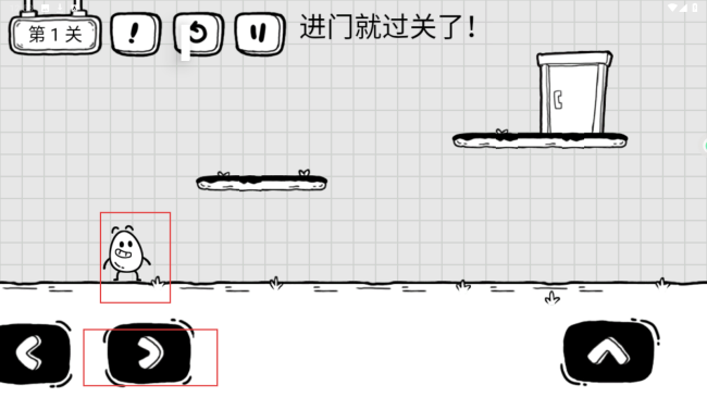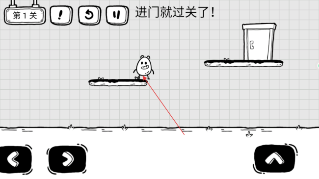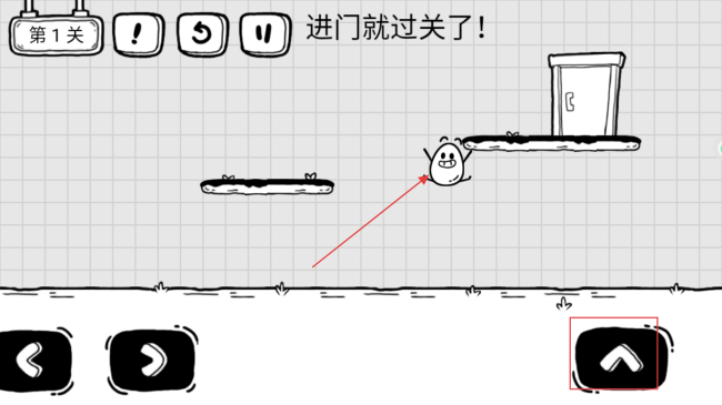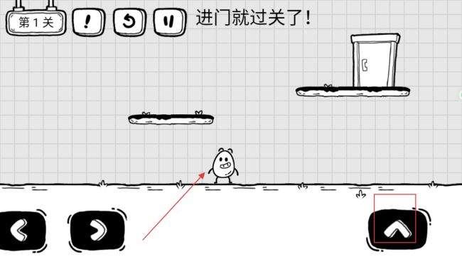 4、点击向上箭头按钮,操控角色从中间平台跳到门所在平台,进入门内,即可通过第1关。