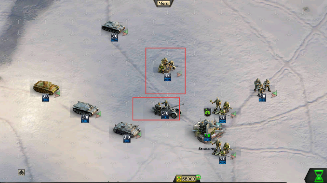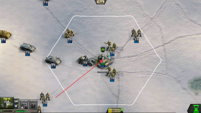 2、战斗中,合理部署部队,利用坦克等单位,在六边形区域内,向敌方发起进攻,争夺区域控制权。