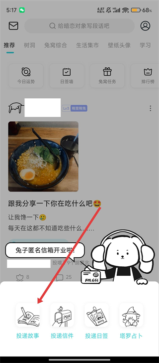 2、在功能菜单中,选择【投递故事】,就能进入故事创作界面,准备分享自己的故事哦。