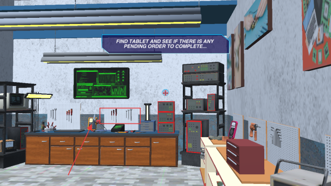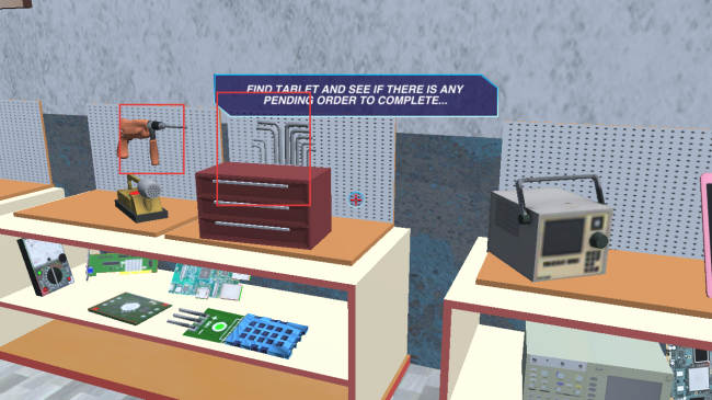 3、在寻找平板电脑过程中,留意桌上的电钻等工具,这些工具后续可能会用于完成订单任务。