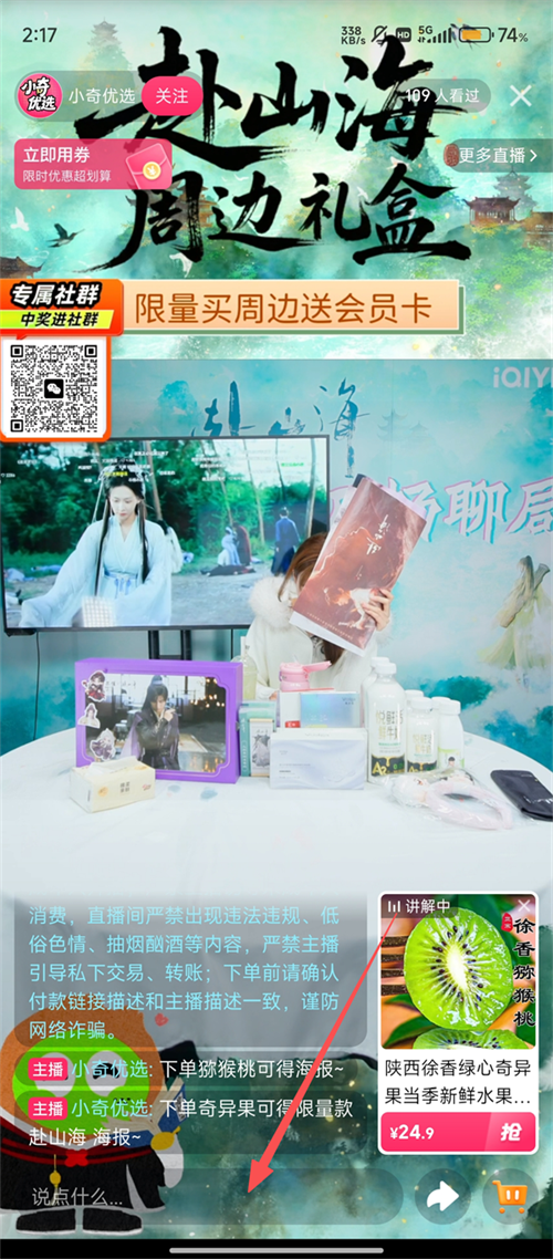 2、在直播页面里,看到感兴趣的直播卡片像【赴山海-周边礼盒】,点击它就能进入对应的直播间,和主播实时互动啦。
