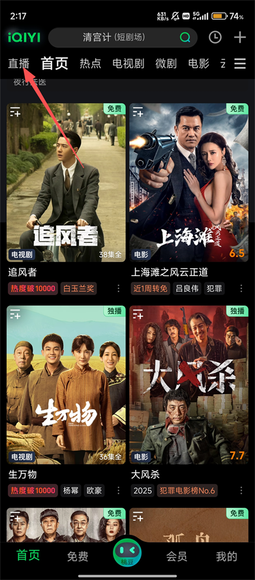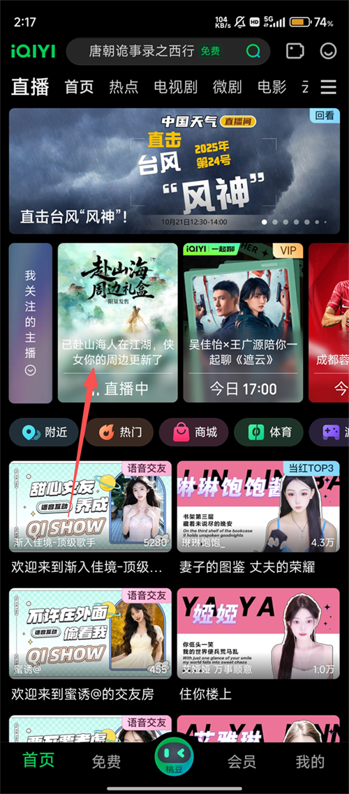 1、我们打开爱奇艺软件,点击顶部【直播】标签,就能切换到直播页面,看到各类直播推荐,开启直播观看之旅呀。