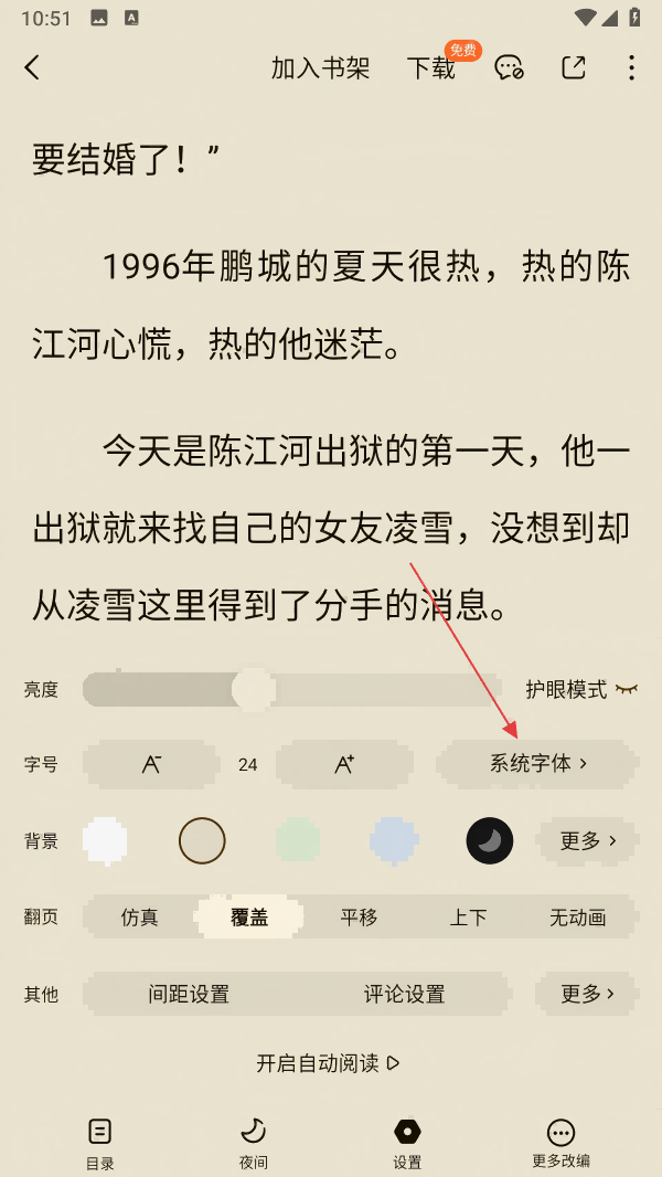 2、点击阅读页下方【设置】按钮,可调整阅读相关参数。