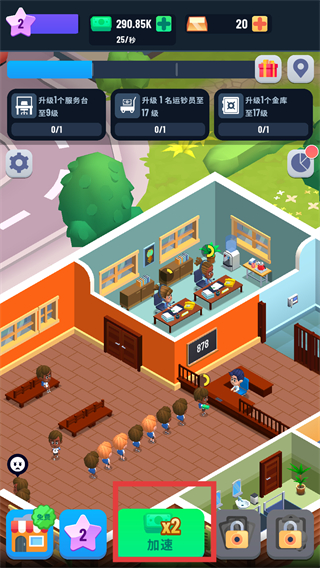 闲置银行大亨无限金币钻石是一款闲置点击经营游戏。作品可满怀激情踏上冒险与致富之旅,从管理银行切入,开展业务、印制钞票、发放贷款和信用,借闲置点击处理各类事务;需做出正确财务与管理决策,逐步拓展银行帝国;还能尝试办公室、超市或矿业等不同领域的商业路径,重复成功再次积累财富,在闲置商业模拟白手起家,最终成为财源滚滚的资本大佬或世界级商业大亨。
