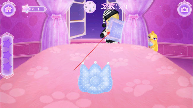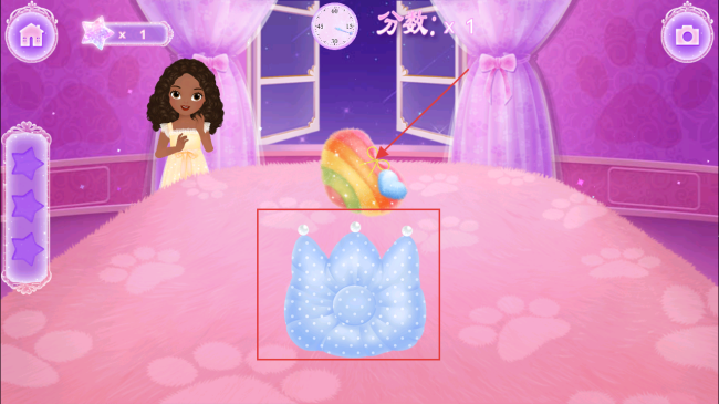 2、进入游戏后,可看到床上有装饰精美的物品,要留意这些元素,为后续操作做准备。