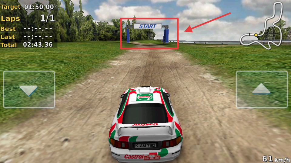 3、冲向【START】拱门开始计时,保持61千米每小时左右速度,沿赛道完成1圈挑战。