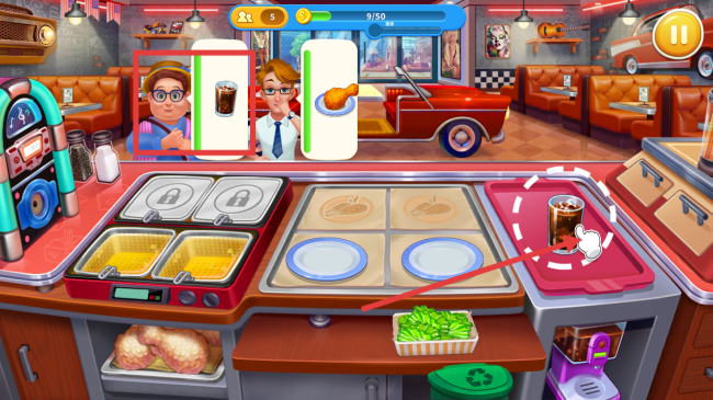 3、疯狂厨师根据顾客需求制作相应美食并获得金币奖励,顾客满意度直接关系到收入多少增加了经营策略的重要性。