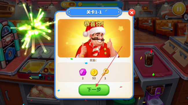 4、完成关卡任务后,会获得奖励,点击【下一步】,继续挑战后续关卡。