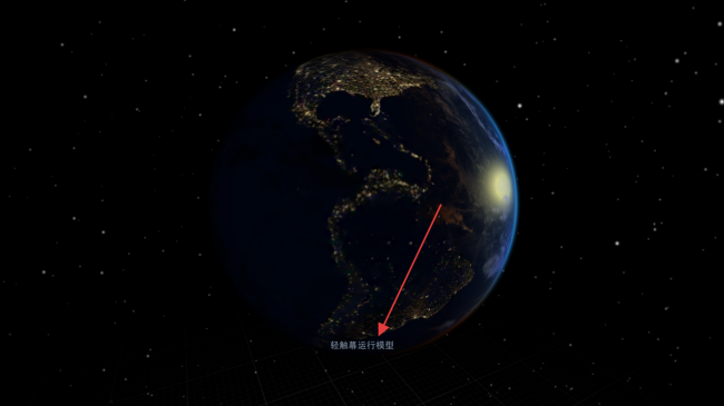 1、进入游戏,看到地球画面,根据提示“轻触幕运行模型”,轻触屏幕,启动地球运行模型,开启宇宙探索。