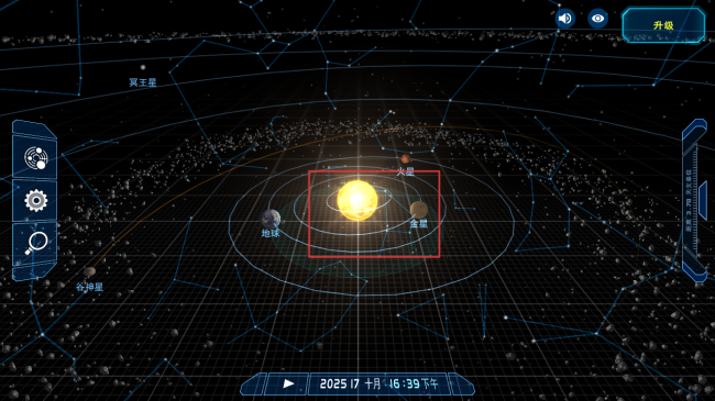 2、来到太阳系场景,能看到太阳、地球、金星等天体。观察天体布局,熟悉太阳系结构,为后续探索做准备。