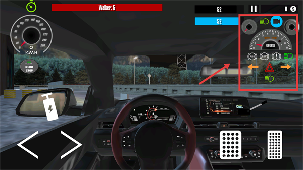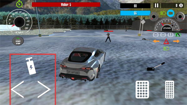 2、进入关卡后,用右侧油门、刹车按键,操控车辆移动,接近僵尸目标。