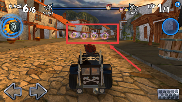 3、行驶中,收集赛道上的紫色光环道具,增强赛车能力或获取增益。