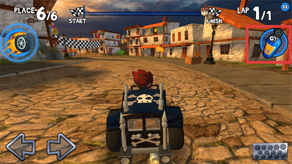 4、点击右上角蓝色道具图标,使用道具冲刺,助力在比赛时超越对手。
