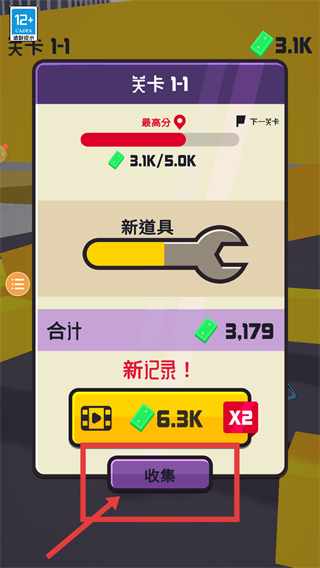 4、关卡结束后,点击【收集】按钮,领取获得的绿色钞票与新道具奖励。