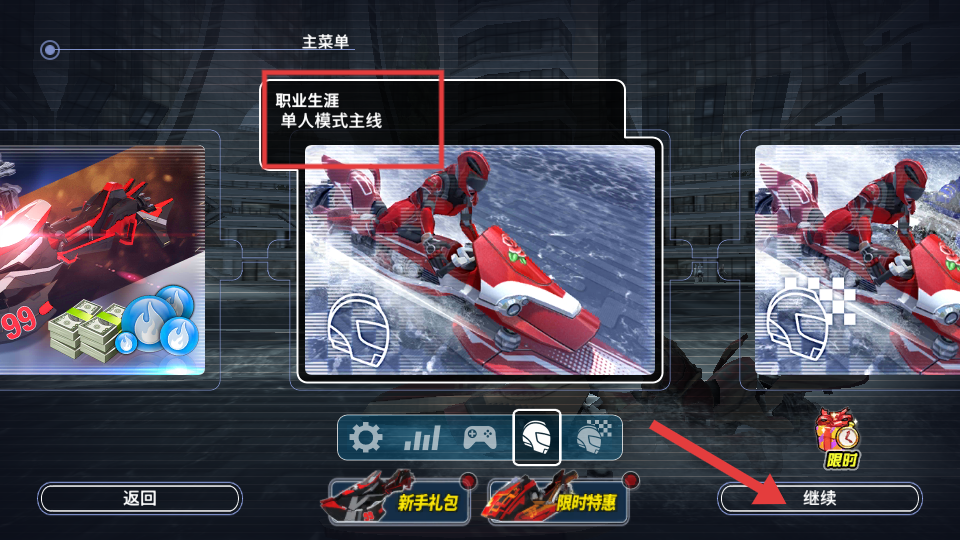 2、选择【职业生涯单人模式主线】,然后点击【继续】,推进游戏。
