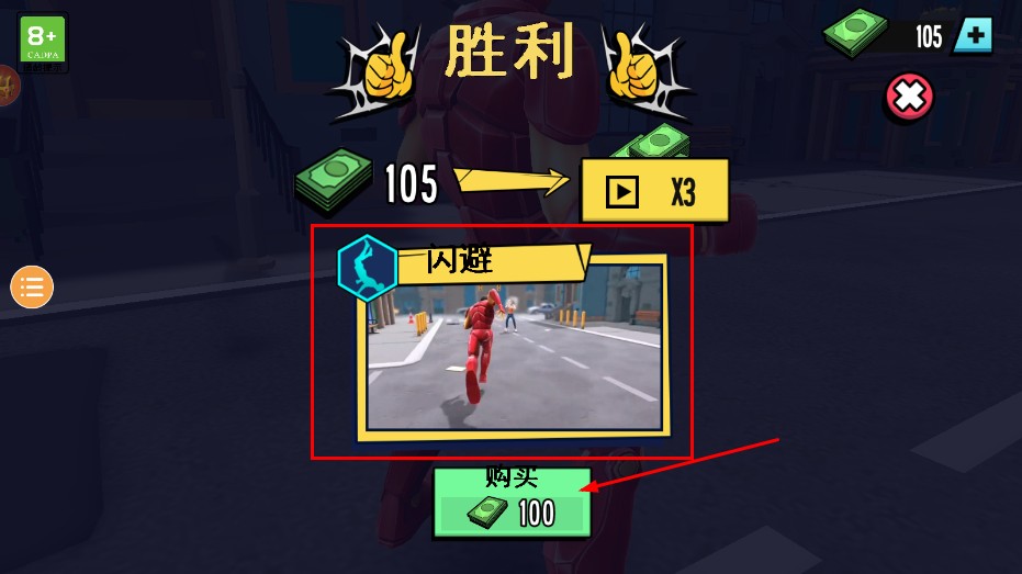 4、胜利后,用100金币购买【闪避】技能,提升战斗生存能力。