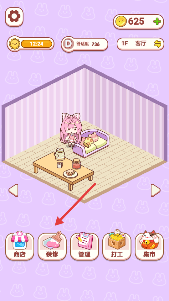 3、经济系统完善:通过打工完成任务等方式赚取金币,用于购买家具和装饰品,推动小屋升级提升舒适度和美观度。