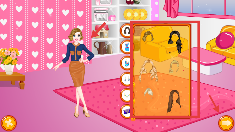 3、进入装扮界面后,可从右侧的发型等选项中,选择喜欢的发型为女孩更换。