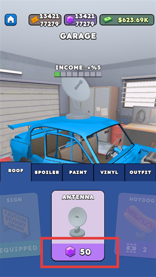 2、在车库,花费【50】紫晶购买【ANTENNA】部件,可提升车辆收入加成。