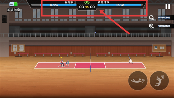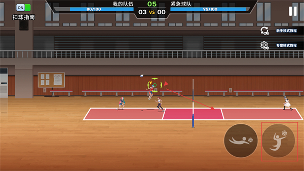 1、发球或准备时,点击【扣球】按钮触发扣球,把握时机开启进攻。