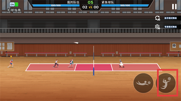 2、球至我方进攻区,点击【扣球】按钮,角色跳起扣球,提升得分效率。