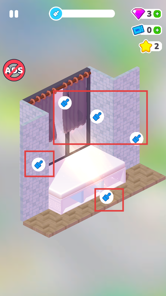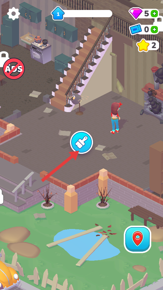 1、点击粉刷图标,进入装修布置环节,开始对场景进行改造。